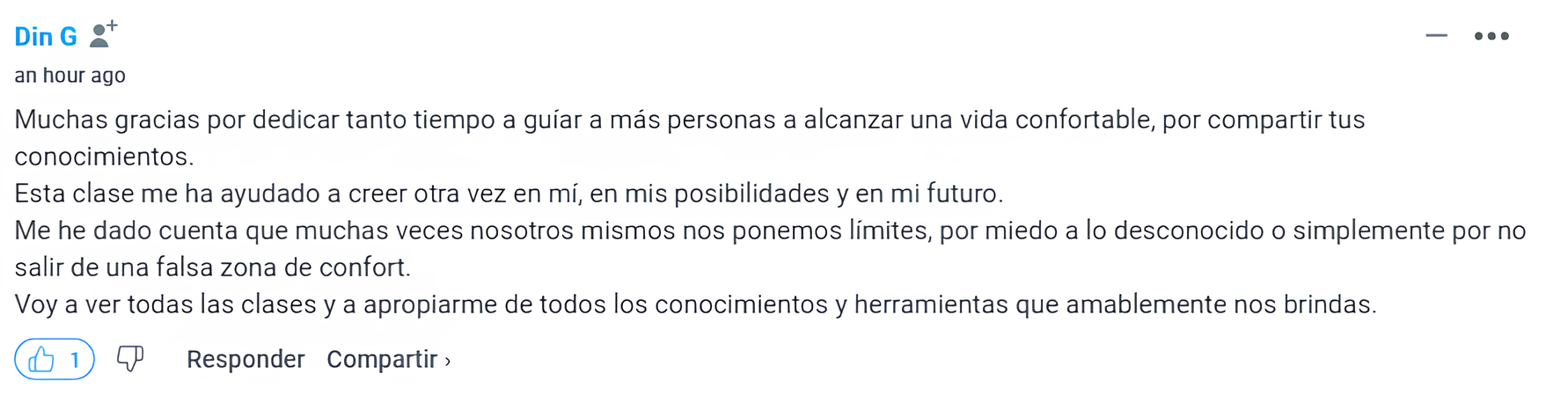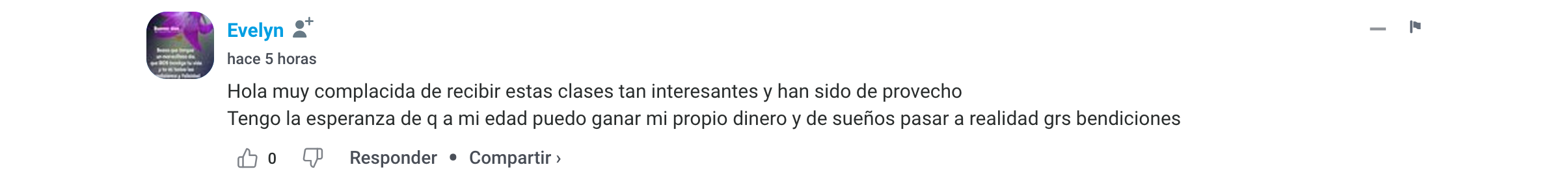 Al final de la formación, haré una oferta para las personas que quieran tener acceso a un método completo que les ayudará a implementar lo que aprenden en la capacitación y más. Esto es completamente opcional. La formación consta de 4 clases de una duración variable y si no quieres el método completo, puedes irte sin comprar nada. En la formación no ocultará nada y podrás implementar lo que aprendas de inmediato por tu cuenta.